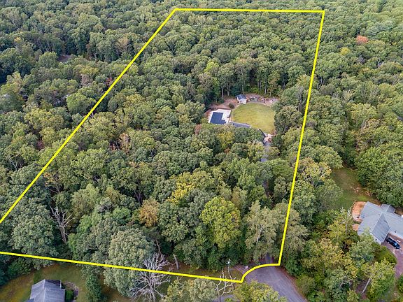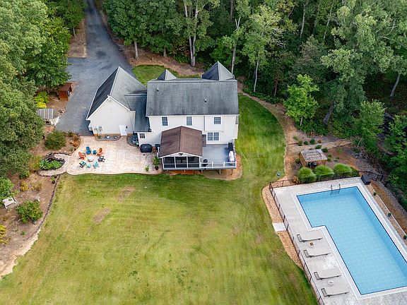 Set on over five private, wooded acres at the end of a private cul-de-sac street, this 3,600+ square foot residence combines refined updates with room to spread out. Step inside and find a main level designed for everyday ease and gatherings—renovated kitchen with cream-to-the-ceiling cabinetry, granite countertops, subway tile backsplash, a spacious island, and stainless appliances. Luxury vinyl plank floors flow throughout, leading to a welcoming family room with fireplace, updated half bath, breakfast room, and formal living and dining rooms. The updated staircase with craftsman newel posts and iron balusters carries you upstairs, where new carpet softens the landing. Three generous bedrooms and a full bath are complemented by the vaulted-ceiling primary suite with walk-in closet, soaking tub, dual sinks with vanity seating, walk-in shower, and updated flooring. The lower level adds approximately 1,200 square feet of flexible living space: full ceramic-tiled bath, rec room with full-sized windows, and multiple rooms ready for work, exercise, hobbies, or additional bedroom for guest use. Outside, the story continues—deck, stamped concrete patio, and a large screened porch invite year-round enjoyment. A fish pond with tranquil waterfall offers a quiet retreat, the shed with electric expands possibilities, the greenhouse brims with possibility, gardens promise fresh harvests, and the chicken coop stands ready to bring a touch of farm-to-table living right into your own backyard. The fun and entertainment continues with the home's private basketball court and large in-ground, up to 9ft. pool with diving board framed by brand-new stamped concrete patio, full fencing, and a serene wooded backdrop. All this, with convenient access to shopping, restaurants, and main highway corridors. Here, you’re not just buying a home—you’re stepping into a lifestyle where recreation, relaxation, and inspiration meet.