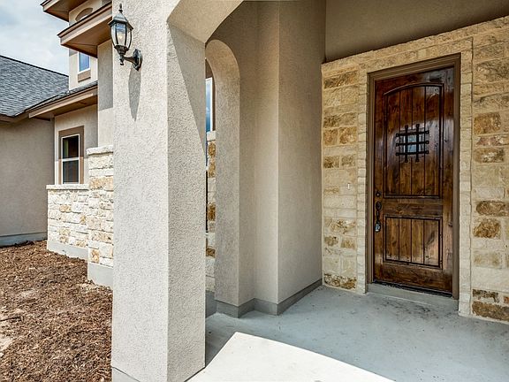 This stylish 3 Bedroom 2 1/2 bath 2 car garage home has many unique features like a corner kitchen with a HUGE curved bar. It also has a large covered porch and oversized side entry garage. All of our homes feature a designer master bath with seperate garden tub and walk in shower... in addition it has all of our Standard features for this series of home which are EXTRAS with most other builders including ceiling treatments, with crown moldings, Niches, Recessed lights,Tiled main areas, 8ft doors and openings,"butt glass" window, open floor plan, stucco and stone exterior, landscaping package, tongue and groove patio ceiling with recessed lights, wood burning interior fireplace, 10' plates, 2 tone Sherwin Williams interior paint, Ceiling fans in family room and all bedrooms, pre plumbed for water softener, in wall pest defense, oil rubbed bronze hardware, plumbing and electrical fixtures, all wood cabinets with slow close drawers and doors, granite counter tops with underhung sinks, travertine backslash,built in 30' GE appliance package, glass pantry door, radiant barrier roofing, double pane low e windows, 14 seer ac,