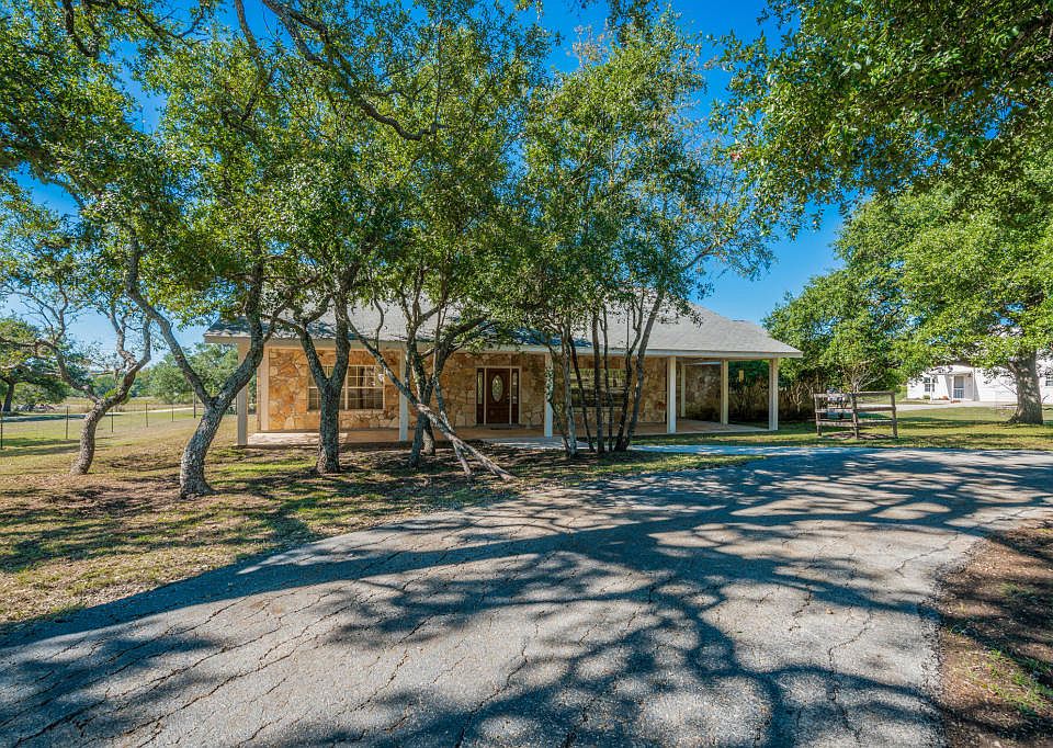 5 acres with a beautiful stone single story home boasting spacious porches front and back. The main house has 2904 (HCAD) sq. ft., 3 large bedrooms and 3 baths. The living area includes a cozy wood burning stove and open vaulted ceiling. The kitchen is over-the-top with counter and cabinet space galore. Off of the foyer is a perfect space for a formal dining or office. There is a large workshop with an RV parking spot and attached living quarters or guest house. The guest house has been rented for $700 per month. It has one large bedroom and one bath with approx. 760 sq. ft. (HCAD).