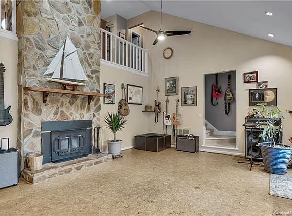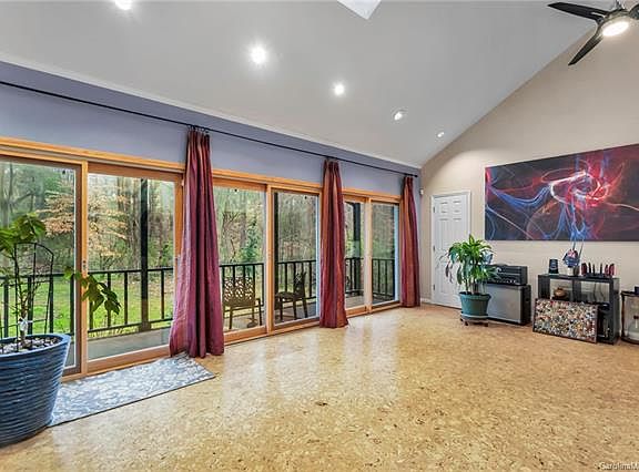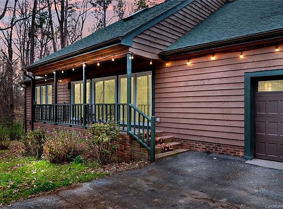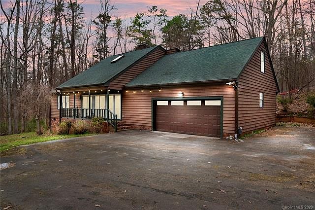 Beautiful wooded privacy on this amazing property. 4 Bed / 2.5 bath home on 1.3 wooded acres. This updated well maintained home is very tastefully decorated with neutral colors. Granite in the kitchen with stainless appliances. Updated lighting and new flooring throughout. Master bedroom on the main floor. Split bedroom plan allows for privacy. Main living room has cathedral ceilings with a soaring, stone fireplace. A second fireplace opens in the upstairs loft. Gorgeous cork flooring over most of the main living area upstairs and downstairs. Skylights in bedroom upstairs accentuate the outdoor life, light and ventilation. Over-sized garage, room for 2 cars and all the equipment for enjoying the natural world. Massive deck on the back of the house perfect for entertaining. Fire pit, trails and camp sites on the adjacent property. This home is located 1.5 miles to Copperhead Landing on Lake Wylie for the boating enthusiast. Only minutes from the airport, Uptown and shopping. If you are looking for privacy this home is a must see.