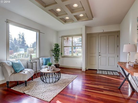 Stunning Views of Portland, Mt. Hood, Mt. Adams, & Mt. St. Helens are maximized with 2 levels of newly finished decking to take in the view!Home is light & bright hardwd.floors on main with extensive built-ins and custom millwork throughout. 4 large bedrooms, a master suite with deck access and bath with soaking tub, shower and large walk in closet! Lower level has climate controlled wine cellar custom doors, bonus rm. & storage!