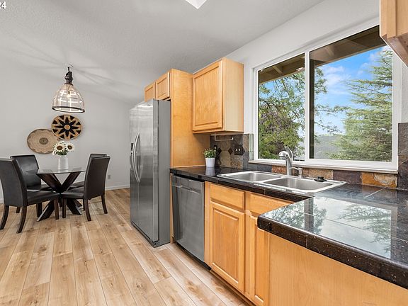 Fabulous opportunity to own affordable housing in the award winning Lake Oswego School District. This home has been refreshed with new paint, and flooring. Walls of glass sliding doors bring in the outside with the 600 sq. ft deck overlooking the fenced backyard and the amazing Willow. There is a playhouse/shed and a swing for the young at heart. The 1000 square foot garage/basement offers opportunity to expand or store those precious cars. Please note that the square foot extra space is a basement type storage and workshop 14x40 .