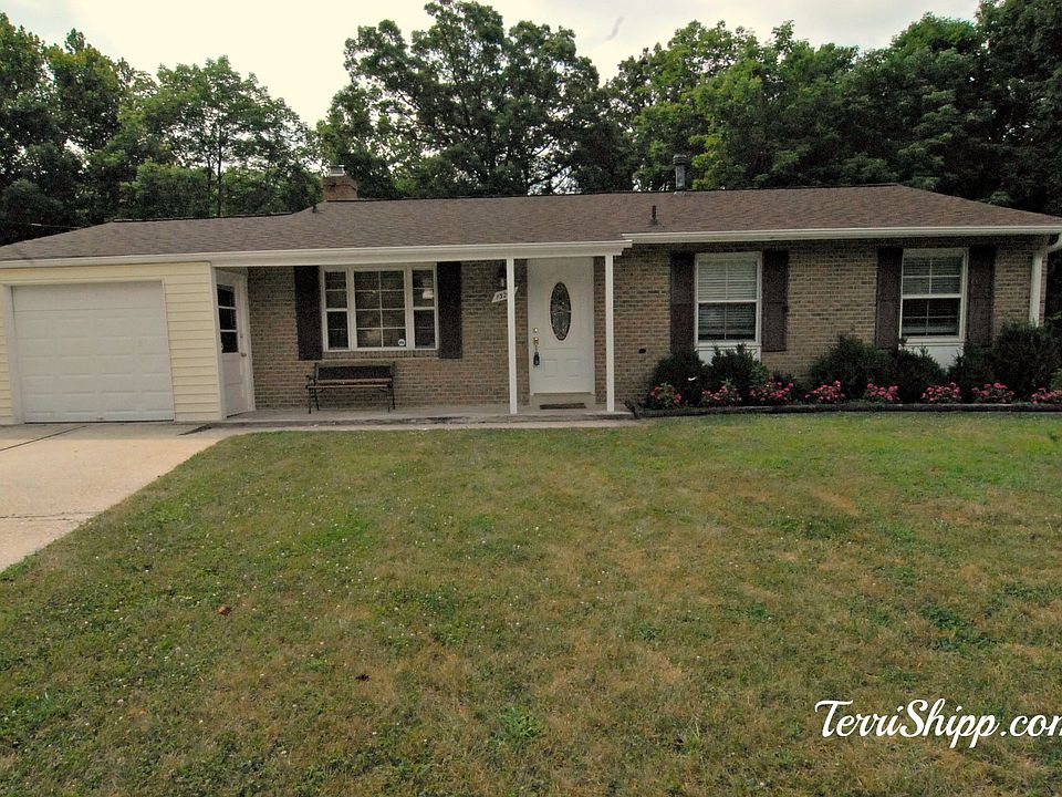 Lovely four bedroom, two full bath brick front rancher with beautiful hardwood flooring on main level, eat-in kitchen with granite counters, oak cabinetry, white appliances and ceramic tile flooring, formal living and dining areas, ceramic tile baths, finished walkout basement with family room with brick wall fireplace and French doors to patio. Freshly painted 2015, new roof 2012 and new gas furnace 2010. One year warranty too !