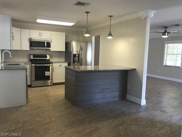 SELLER MOVITATED!!! Very upscale! Beyond any remodel corner lot, 3 bedroom with new kitchen. One of a kind custom home. All high end LG stainless steel appliances and granite counter tops. Modern master bath. Large living room area and large screened in lanai, plus 1 car garage. There is also a shed in the backyard. Property enclosed w/brand new privacy 6ft fence. Full price offer, seller will pay for new roof. Community has boat ramp conveniently located near everything. SELLER WILL PUT ON NEW ROOF WITH FULL PRICE OFFER.