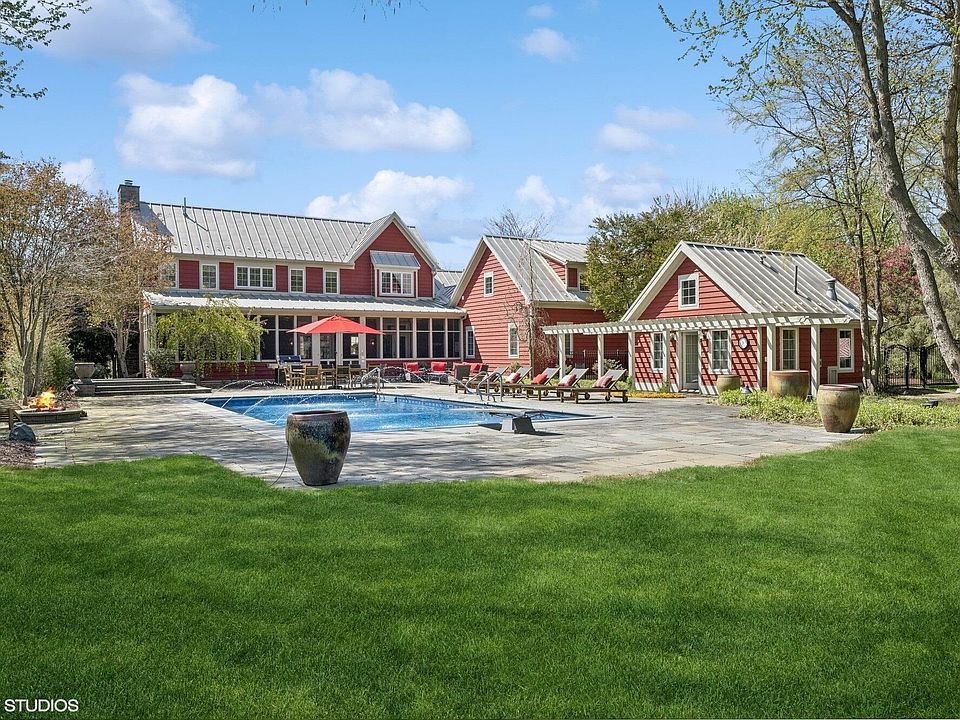 Grand neo-classical farmhouse design with luxurious appointments on 2.27 acres in the heart of Michigan's Harbor Country. This custom country estate offers everything with complete privacy to soak up the summer sun in the heated in-ground pool with blue stone deck, Jacuzzi, fire pit, lighted sports court or a peaceful afternoon on the 50' long screened porch overlooking the magnificently landscaped grounds. The well appointed interior boosts 10' ceilings, wood floors, marble baths, three fireplaces, surround sound & security system. Primary bedroom with vaulted ceiling, fireplace & marble bath with walk-in shower & soaking tub. Amenities include generator, landscape lighting, irrigation system with it's own well. Minutes from the shops and restaurants of downtown Sawyer and Warren Dunes.