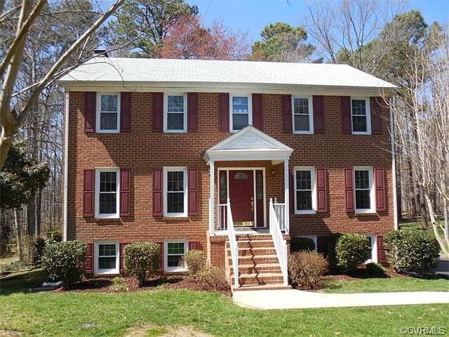 Renovated BEAUTY IN THE HEART OF MIDLOTHIAN. Better than new ALL BRICK Colonial w/BASEMENT on large private lot backs up to Midlothian Mines PARK. LOVINGLY MAINTAINED home on quiet CUL-DE-SAC truly in MOVE-IN CONDITION. Over-sized GARAGE. Freshly painted in current colors. GLOWING HARDWOOD FLOORS on 1st floor. KITCHEN RENOVATED w/new cabinets, laminate flooring, tile backsplash & appliances. All 5 exterior doors & 2 storm doors have been replaced. 13 SEER HEAT PUMP installed in 2014. You'll love the insulated tilt-in double hung vinyl REPLACMENT WINDOWS. All exterior trim is MAINTAINENCE FREE. The wood-burning fireplace flue has been relined w/ a STAINLESS STEEL LINER WITH LIFETIME GUARANTEE. When present dimensional roof was installed, original roof was removed. RENOVATED MASTER BATH offers a gorgeous fully tiled shower w/ frameless glass door, granite vanity top, & tile floor. Hall Bath has also been RENOVATED w/ tile floor, tile tub surround, & granite vanity top. You'll enjoy TOP CHESTERFIELD SCHOOLS (Watkins Elementary, Midlothian Middle & High!) & EASY ACCESS to major highways. The neighborhood Rec Center offers tennis court, playground, and POOL you can choose to join.
