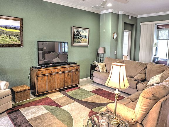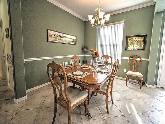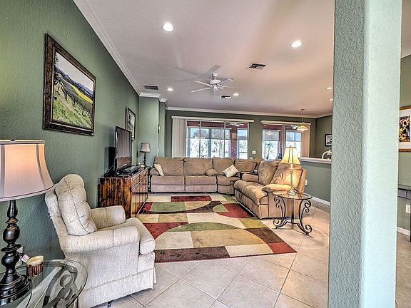Great views of the golf course from this lovely home. This 3 bedroom with a den has wonderful features and upgrades including an enclosed lanai under heat and air,ceramic tile on the diagonal throughout except for the bedrooms, double glass entry doors, french doors on the study, island in the kitchen and much more. Great Price!Great Butler's Pantry with some glass front cabinets plus sink!