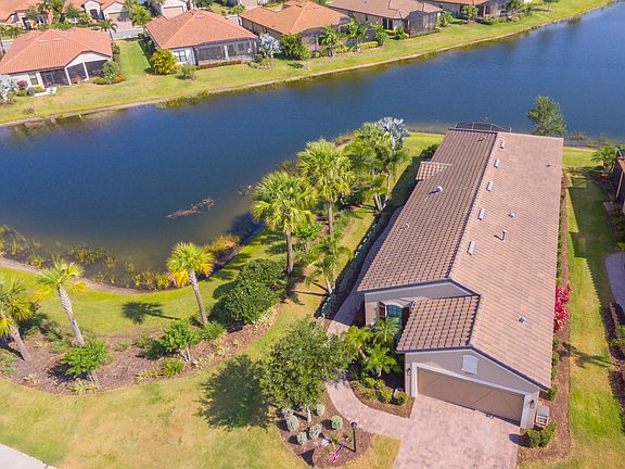 Located in a gated community & on one of the most private waterfront lots in Esplanade Golf & Country Club at Lakewood Ranch. This spectacular home with over $110K in designer upgrades is move in ready. The first thing you will appreciate are the views of the water from almost every window with 160' of waterfront on 2 sides. This has a comfortable feel to it & you will love the large great room that features sliders out to your private lanai & features surround sound. The open plan features 3 bedrooms, 2 baths, plus study, formal dining room & a great room. Built in closets in each bedroom, wood plantation shutters on all windows, crown molding, tray ceilings & ceiling fans. New plank tiles in bedrooms & 20 x 20 tile laid on the diagonal in all of the main living areas with no carpet throughout. The gourmet kitchen is a chefs delight that features granite counter tops, breakfast bar, 42" cabinets w/designer molding, stainless steel appliances & 6 burner gas range. You will love the large screened in lanai with pavers to enjoy the lake view & sit back & enjoy true FL living. Maintenance free living at its best with beautiful landscaping & so much more! Esplanade offers resort style living with 2 pools, 2 spas, 2 fitness centers, outdoor grills, golf course, tennis, pickle ball, Bahama Bar, hair & nail salon & more. You will enjoy coming home to this meticulously kept executive home with the convenience of State of the Art facilities in the community. Now that's living the FL Dream! No Golf fees Required!
