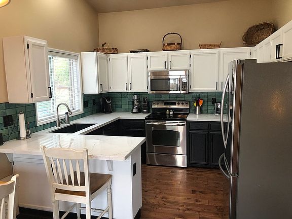 Completely upgraded from floor to ceiling. New 40 foot cement patio/ outdoor living space. New roof, new exterior paint. New garage doors. Kitchen newly upgraded with quartz countertops and under mount large sink. Hardwood floors throughout with tile in baths. Tile surrounds in both baths. New gas fireplace with porcelain surround. New central air conditioning.