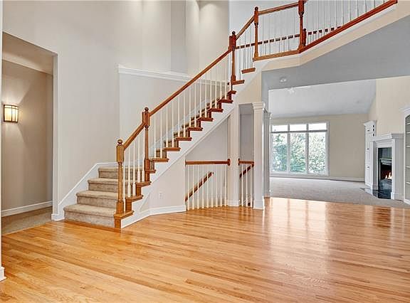 Beautiful custom-built home, located in highly sought-after Wilshire. This home with a 3 car garage is situated on a premier, private cul-de-sac. Great curb appeal. Upon entering the home you are greeted with freshly painted walls and trim. Large great room and hearth room share a see-thru fireplace. The kitchen features lots of cabinets and granite counters. Spacious master suite with updated master bath with shower, soaking tub and dual vanities, plus walk in closet. Secondary bedrooms include walk in closets. Lower level includes wet bar, family room, theater room and hobby room. The walk out goes to a large backyard. This home has plenty of space to entertain, watch tv and play games. Wilshire has a neighborhood pool, tennis, and pickle ball courts. Close to Blue Valley Schools, parks, grocery stores, restaurants and highways!