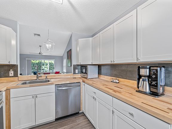 Lovely townhouse in the heart of Wellington, close to everything & ready to make your home for season. Recently updated kitchen and bathrooms with butcher block countertops, new stainless steel appliances, and vessel sinks. New interior paint and downstairs flooring. Accordion hurricane shutters have also been added. Low HOA and minutes to all Equestrian venues.