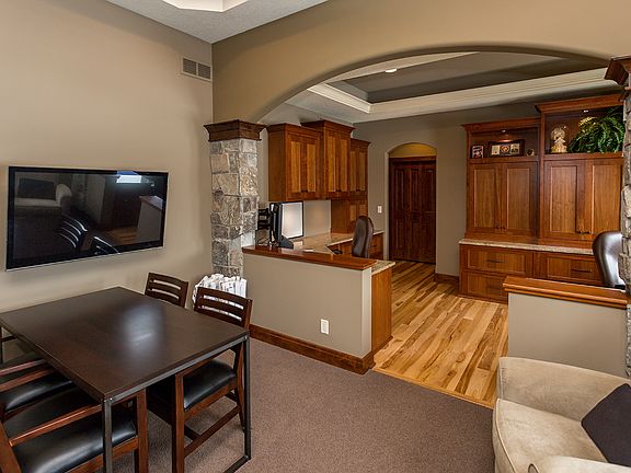 Custom, quality, & attention to detail this home is an experience you don't want to miss. This Exceptionally designed home is builders own home. If you are searching for luxurious detail this is it! Outstanding features include GeoThermal, irrigation, tankless hot water heater, HVAC, upgraded gas fireplaces, smart home w/lighting, & audiovisual capabilities. Real hardwood floors&custom built-ins. Open concept main level w/gourmet kit, professional appliances, island w/lighted cabinets, butlers pantry, & office area that could be used for a mother in law suite (it has 3/4 bath or be used as a flex space) Sitting room & large family room w/beautiful views of trees & wildlife. Master bedroom w/built ins & ensuite w/heated floors. Extra bedroom on main floor for guests. Off the heated garage is workshop/yoga room. Lower level has a family room w/daylight windows.Wet bar, hot tub room, & theatre room that feels like you are at the movies! Two bedrooms & two baths complete the lower level.