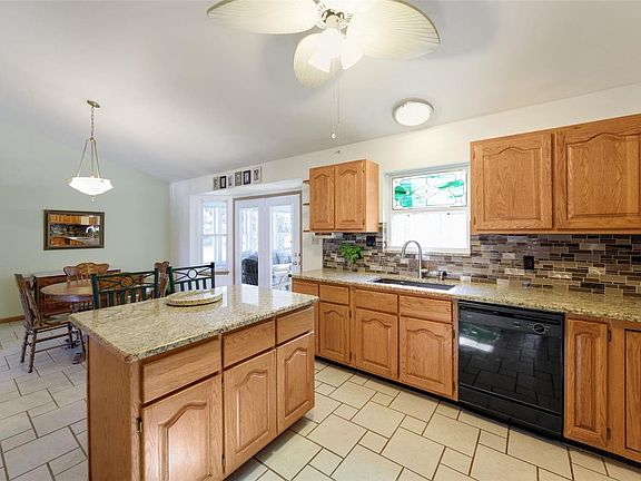 plan with a three-sided fireplace and a sunroom with a view of the awesome yard backing to woods. The kitchen is connected to the large breakfast room and a great pantry space. Amenities you will love include granite countertops, beautiful backsplash, large center island, vaulted ceilings, and so much more! The main floor master suite has dual closets, a separate tub and shower, and an extended vanity. Laundry is on the main floor along with two other bedrooms and an additional full bath. The finished basement has a half bath and is roughed in for a full. The two-car garage has a large (23x6) storage room with shelves. You don't want to miss this gem in the Lindbergh district with convenient access to The Bluffs. Additional Rooms: Sun Room
