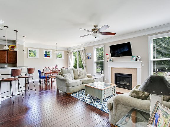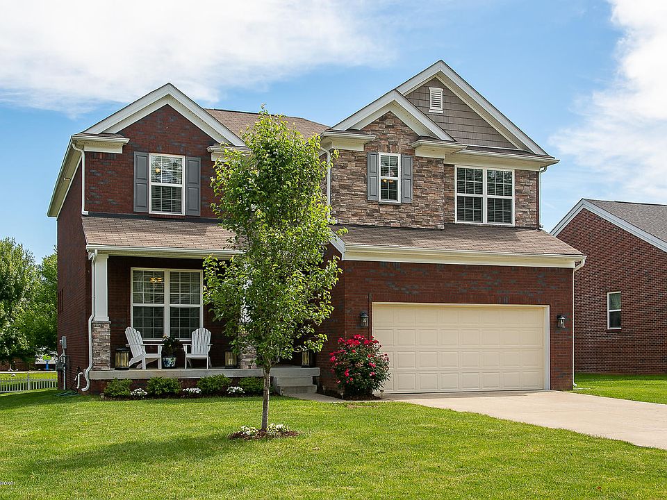 Welcome Home to 13207 Cain Ln in East Louisville's Woodlands Creek community, conveniently located near I-265, tons of local amenities, shopping and the Ford Motor Kentucky Truck Plant! This 6 year old home has been meticulously maintained! The main level is wide open with tall ceilings, beautiful custom moldings and wainscoting and features an open kitchen design in to the Great Room. There are prefinished wood floors on the main level and a gas fireplace. The Kitchen has a ton of cabinetry and counter space plus a bar seating area, breakfast area and a formal Dining Room. Also on the main level is a first floor office, half bath and laundry room. On the second floor is the owner's suite plus 3 additional bedrooms and a full bath. The owner's suite is generous in size and features tons of crown molding, walk-in closet, tile bath with stand up shower, soaking tub and a double vanity. The 3 additional bedrooms on the second floor are all good size with large closets and share a full hall bath. The basement is mostly finished with a large open recreation room with space for a media area, billiards area and a bar area. There is also a full bath in the basement plus an unfinished storage and utility room as well. This home features a one year H S A Home Warranty! On the exterior, there is a rear patio, great yard, a two car garage with automatic openers and a brick exterior with stone and vinyl shake accents.