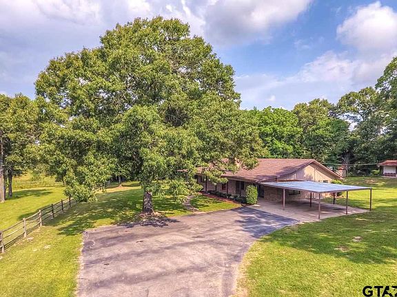 Enter an East Texas haven driving along the treed driveway into the heart of the acreage. Overlooking a spring fed pond. Near Chapel Hill. Updated 2640 square foot home with 3 bedrooms, 2 1/2 bathrooms, open living, kitchen and dining. Large brick wood burning fireplace and built in cabinets & gun cabinet in the living room. Office at the back of the home with door to the patio and hot tub. Master split from the other bedrooms with a huge bathroom and french doors that open to the 10' x 60' covered front porch. Views of the acreage and pond! Roof 2016, 50 gallon gas HWH in 2008. Air conditioner 9/14/2015. Water and electricity service the 48' x 52' galvanized barn. Chutes, gates and additional equipment convey! Don't miss out on this Ranch!