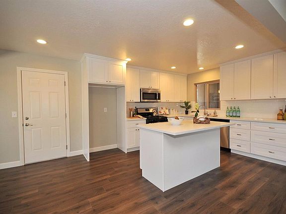 Recently remodeled home in a desired neighborhood of Apple Valley! Beautiful new desert landscaping in the front yard with fresh exterior and interior paint. Rich laminate flooring greets you as you enter the home. You will appreciate the open feel of the dining room adjacent to the kitchen. The kitchen has been treated to custom white panel cabinets, sleek quartz countertops, and new stainless steel appliances! New lighting throughout the home and plush carpet in the bedrooms round out this gem. The bathrooms have all been redone with framed mirrors, new tile, shower surround, and vanities. The home also includes a huge backyard with a covered patio perfect for entertaining. Come see this beauty for yourself today!