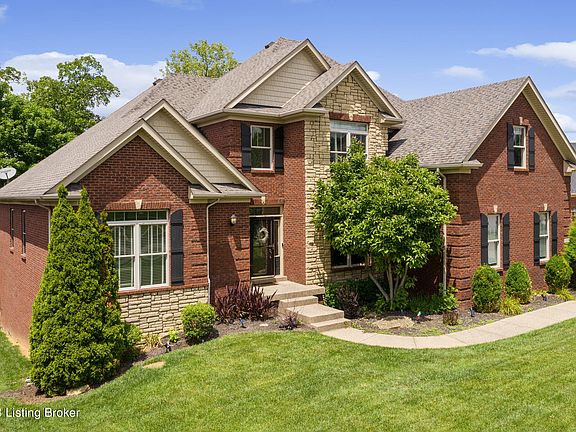BIG and BEAUTIFUL! Welcome to your new 1.5 story dream home at the end of a secluded cul de sac in Jeffersontown! Upon arriving to this Saratoga Springs home you will be received by beautiful brick and stone exterior and enter to enjoy a two-story foyer. The formal dining on the right is adorned with tray ceilings, wonderful crown molding and inlay hardwood floors. You'll spend many nights in the open living room cozied up to the gas fireplace. The eat-in kitchen is equipped with abundant counter and cabinet space. Experience privacy and luxury in the large first-floor primary suite with large master bathroom and closet. Also enjoy the second bedroom and bathroom on this floor that make for the perfect home office. Three large bedrooms and another full bathroom upstairs allow for plenty of room for guests and children. Entertain friends and family in the large finished walkout basement, complete with a