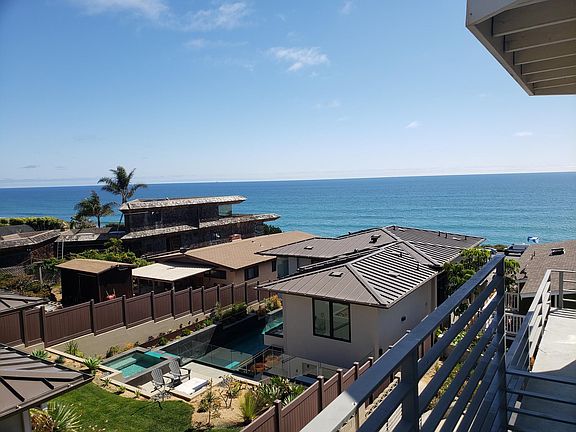 Top-of-the-World View from La Jolla to Dana Point. Spectacular sunsets, whitewater, surfers, waves! See dolphins and whales from the decks. One of the best locations and views in Cardiff! This home is about 700 feet from the Pacific. Right in front of Swami's Beach. 5 minute walk to downtown Encinitas, Swami's and 15 minute walk to Seaside Market in Cardiff. Top floor available with 1500 sqft, 3BR, 2BA. With three wonderful decks overlooking the Pacific! Best price in the area! $6500/mo with 9 month lease, then option for month-month! Plenty of parking available onsite (including one garage). 9 month lease and then month-month.