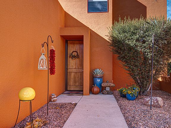 This exquisite Barranca unit is situated in a desirable private location at the end of the building and offers an unparalleled blend of comfort and elegance. Spanning approximately 1,605 square feet, this recently updated two-level condo has 2 ample bedroom suites, 2.5 bathrooms, two car garage and an array of premium features, that cater to the discerning homeowner. The primary bedroom suite on the main floor is a serene retreat, offering direct access to the private patio with tree coverage, a spacious walk-in closet, shower, and large soaking jetted tub. Upstairs, the second bedroom is bathed in natural light, featuring an ensuite bathroom and a rooftop viewing deck; ideal for enjoying the breathtaking sunsets and mountain ranges. Zocalo is more than just a place to live; it's a lifestyle. This vibrant community designed by world renowned architect Ricardo Legorreta, is conveniently located close to downtown Santa Fe, providing easy access to many cultural and recreational activities. Residents can enjoy the community's private amenities, including a beautiful clubhouse, a seasonal heated swimming pool, outdoor hot tub, two well maintained versatile fitness centers, and a large community grill picnic area, and scenic walking trails.