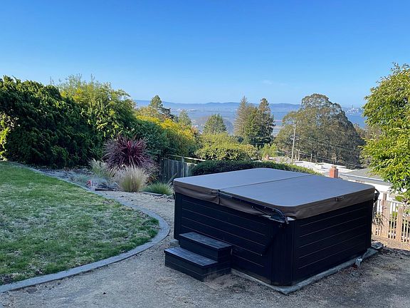 This Mid-Century home with expansive views of the bay is located in a quiet neighborhood. The house is approximately 2,200sq ft, and has original hardwood floors upstairs. The upstairs has three bedrooms and a bathroom that includes a shower and bathtub. The newly carpeted downstairs has one bedroom and a bathroom with a shower; there is also large family room that has a 60" wide screen TV, and additional room that can be used as an office. The property also has a Bosch refrigerator, Miele dishwasher, Bosch washer/dryer, heated bidet toilets and a 2-car garage. The home has heating and air-conditioning controlled by Nest thermostats. There is also a large hot tub in the backyard with spectacular views. The property is on about of an acre and has quite a bit of privacy from the road and surrounding neighbors. Easy walk to Arlington Park which has tennis courts, a lake and playgrounds; close to some hiking trails. Easy access to Highway 80 and walking distance to the bus stop for the AC Transit line #7. Close to Madera Elementary School and to private schools as well. Landlord will cover landscaping and hot tub costs. Tenant responsible for all utilities. No smoking and no pets, please. Additional Info: 1. Minimum 750 credit score. To qualify, each application will be reviewed on the basis of credit, verifiable income, and rental history. 2. Gross monthly combined income for the entire household must equal at least double the monthly rent. 3. No Co-Signors. 4. All income must be verified. Proof can be in the form of two current paycheck stubs, income tax records or bank statements. 5. Applications and background check are required for everyone 18 years of age or older, and must be filled out completely, signed and dated. 6. A photo I.D. must be shown and photo copy provided.