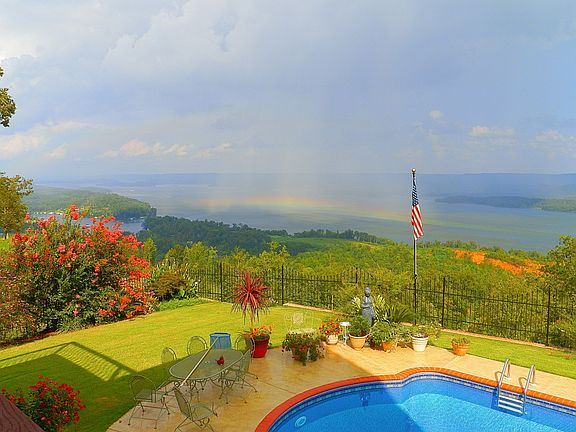 40 minutes to HSV! Luxury custom built home with panoramic view of the Tennessee River! 4700+ sq. ft of luxury inside and 2500+ sq. ft of covered outdoor deck at the front and back! Tiger wood floor on the main level, stairs and the balcony upstairs. Main level has foyer and large living area with vaulted dome ceiling, isolated luxurious owner suite, study w built ins, dining and kitchen. 2 bed and bath rooms upstairs. Main and the upper level provides spectacular view of the river! Basement has Home Theater, Game room, Bed room, Full Bath and Utility. Enjoy the heated Salt Water Pool, Generator that comes on instantly in case power fails, 3 car Garage, spacious drive way, landscaped yard!