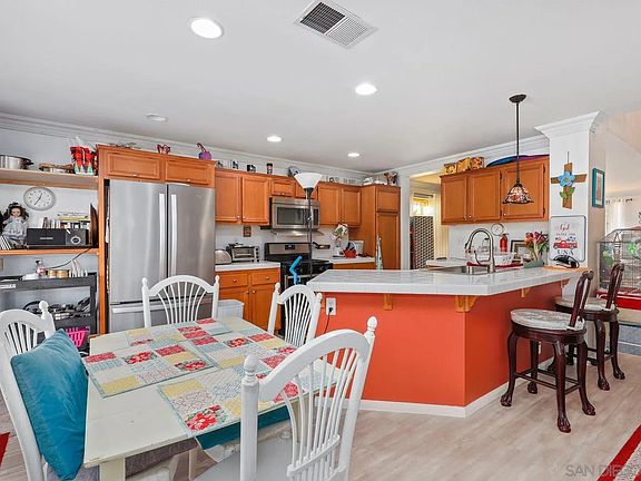 Well-maintained two-story home with an attached two-car garage located within the highly desirable community of Otay Ranch 1 in Chula Vista. Situated on a quiet cul-de-sac, this amazing residence features durable flooring throughout. Large windows bask the home in an abundance of natural light. A beautifully appointed kitchen boasting recessed lighting, stainless steel appliances, and crisp warm honey-hued cabinetry with breakfast counter seating that opens to the living area. There is a bedroom and bathroom on the first floor. All remaining bedrooms are upstairs including the spacious primary suite offering its own en-suite bath with dual sinks, a relaxing soaking tub, and a walk-in closet. Outdoor living has been extended to the private backyard featuring thoughtfully designed hardscape including a large patio cover and low-maintenance landscaping, making it perfect for entertaining. Great community amenities include sparkling pool, clubhouse, park, and recreational trails. Conveniently located, just minutes away from great schools, shopping, dining, parks, Interstate 805, plus so much more. Don’t let this opportunity pass you by!