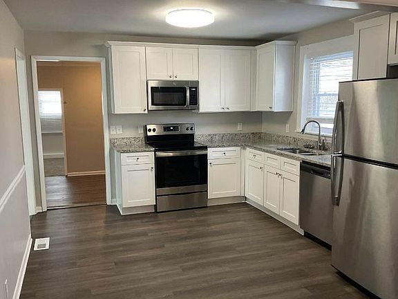 This intimate 3 Bedroom/2 Bath ranch. Living room is classic with natural lighting and has carpeting. Kitchen offers modern cabinets and sink fixture, electric stove/range, and many cabinets for storage. Also offices eat-in dining area and washer/dryer. Bedrooms each offer unique closets, carpeting, and have natural lightning . Bathroom offers shower/bath combo, modern mirror, lighting and shower fixture. Basement offers storage area. Two parking slots are located in the front of the house. f you are interested text me here. QUIET NEIGHBORHOOD MINI BLINDS THROUGH OUT STOVE AND REFRIGERATOR PROVIDE NEW KITCHEN CABINETS LARGE BACK YARD Owner pays for all utilities except electricity. Two parking slots are located in the front of the house so parking is free there's no additional fee