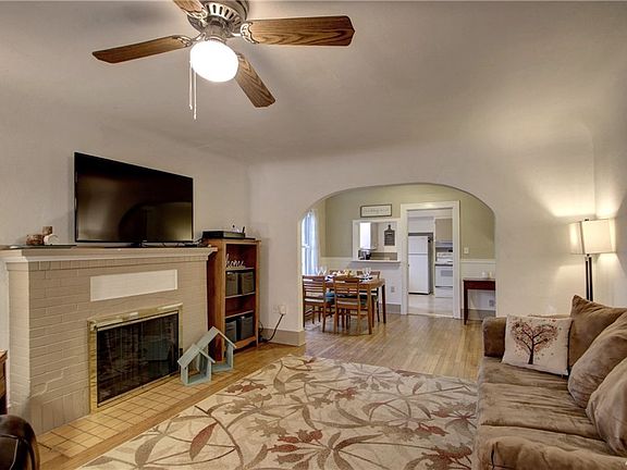 This charming home has hardwoods floors, darling coved ceilings, fireplace and lovely built ins. Outside you will find a fully fenced yard with patio, paved driveway and one car garage with shop space. This large lot provides extra space, while mature landscaping affords privacy and great curb appeal. You will love the glass doorknobs and other details period to the era. Upstairs is large with good headroom and flexible space for lots of options. You will love this great home.