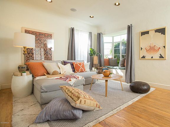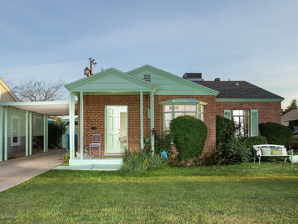 There are houses that you drive by without a second glance, and then there are houses like 1321 E. Monte Vista, a home that you not only slow your stroll for, but remember long after you've walked on by. In terms of curb appeal, it's perhaps most notable for the spearmint green trim that stands out against the home's sturdy brick walls. The color scheme, carefully manicured front lawn, and the matching Little Free Library that sits on the edge of the road makes this home feel Storybook-perfect before you even open the front door. Step inside, though, and you're instantly greeted with authentic Coronado charm. Seriously ââEURœ if someone blindfolded you, drove you to this house, walked you inside, and then took that blindfold off, you'd instinctively know that you were in Coronado. The cozy living room features a cheery window nook that pets and humans alike could spend hours sunbathing in, as well as honey-hued hardwood floors and a charming arched entryway that leads your eye into the rest of the home. The dining room sits between the front living space and renovated kitchen, and provides enough space for a full table and perhaps a Hoosier cabinet, home bar, or other storage units. The light fixture in this room ââEURœ and the others throughout the home ââEURœ were added just before 1321 E. Monte Vista's 2015 home tour, and somehow feel as modern as they do nostalgic. If you turn right while standing in the dining space, you'll walk into an open-concept "hallway" / interior nook that was a popular part of floorplans in the 1930s and '40s. This space serves as a gateway into the other areas of the home, including two bedrooms and a bathroom. The previous homeowners put shelves here, and there's certainly enough room to create your own mini library or quaint lounging space. Speaking of bedrooms, the master is a two-room suite that's divided by a gorgeous set of white French doors. Your options are endless when it comes to how to set up these two rooms, so use your imagination! On the opposite side of this bedroom is the second bedroom, and between both is a gorgeous bathroom that'll earn you an "ooh!" by every single guest who's lucky enough to spend time within your home. The glossy tiles here are a rich, dark blue ââEURœ reminiscent of the deepest ocean depths ââEURœ which exaggerates the crisp whiteness of the pedestal sink. The king of this room, though, is the antique, cast iron clawfoot tub. It was shipped from Port Hope, Canada and installed at the time the house was built. In addition to daydreaming in the bathtub and devouring a magazine or novel in the living room window nook, you can cook up a noble feast in the strategically renovated kitchen. Thanks to the additional countertops and storage space, the kitchen feels roomy and big and lends itself to food prep. It opens into a laundry space near the back of the house, complete with a Jetsons-esque, all-in-one washer and dryer unit. Just when you thought you were done with this tour, you realize there's more. Yes, folks, the charm just keeps on coming with this one. 1321 E. Monte Vista's backyard comes with a garden, covered patio, and 9-foot deep pool that's just been resurfaced, making it the perfect home for hosting BBQs and pool parties for your crew. You'll love the original "85006" graffiti on the wall! In the backyard, you'll also find a detached, two-room studio that can be turned into whatever you desire. The previous homeowners used this as a sewing and craft studio and guest house when friends visited from out of town. You can turn it into a second living space, a home office, your own music studio, or whatever else the heart wants.