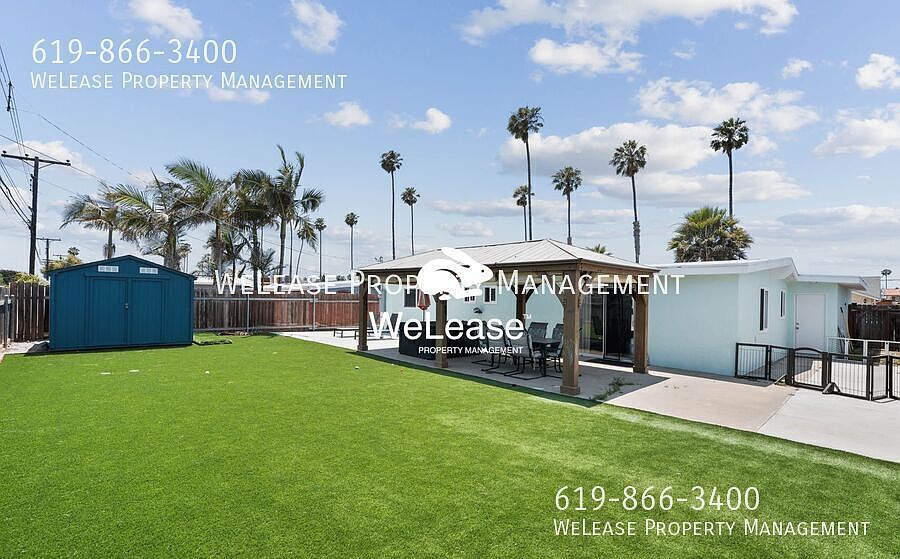 Coastal living at its best in this beautifully maintained 3-bedroom, 2-bath home nestled in a quiet and secluded neighborhood of Imperial Beachjust minutes from the shoreline! Features vinyl plank flooring throughout, split AC unit for comfort, and a whole-house water softener system for added luxury. The spacious layout includes a fully equipped kitchen with refrigerator, stove, dishwasher, and in-home washer/dryer. Enjoy outdoor living in the expansive fenced backyard featuring low-maintenance artificial turf, a charming gazebo, jacuzzi, and ample space for relaxing or entertaining. The oversized garage and extended driveway offer abundant parking and storage options. DEPOSIT: 1 month's rent APPLIANCES: refrigerator, stove, microwave, dishwasher, washer & dryer, garbage disposal. AIR CONDITIONING: Yes, split unit UTILITIES INCLUDED: None all resident responsibilities YEAR BUILT/RENOVATED: 1961 PET RESTRICTIONS: 1 pet limit. Pet rent is $35 per pet If you are applying with an emotional support animal or service animal, please provide the corresponding documentation. AVAILABLE: 6/15/2025 Professionally managed by WeLease. RENTAL CRITERIA -Strong Credit Score -Collective household income 2.5 times the monthly rent -No prior evictions. -No balance owing past or present to: Utility company, property manager. -No excessive late payments to previous landlord or on credit report. -No recent criminal activity within the past 6 years. -Security Deposit is required to be paid in full within 24 hours of receiving approval notification. -You must be willing to start lease within 14 days of property being available. - Co-signers & Guarantors must meet the same income requirements with no prior negative payment history and have a credit score in excess of 700. MUST SUBMIT DOCUMENTS WITH APPLICATION: 1. Each applicant must submit the online application and pay the $45 non-refundable application fee. Complete all fields in application. 2. Copy of current government issued ID. 3. Proof of verifiable income for each applicant. (NO screenshots accepted) - If employed, copy of last 2 paycheck stubs containing year-to-date info. - If starting job, a copy of your employment agreement/offer letter - If self-employed, copy of prior two years tax returns and business bank statement for the previous 3 months (each document must include all pages). - If retired, proof of retirement income such as social security, disability, liquid assets, personal savings/bank account, or stocks. Copy of last 3 months of bank statements. 4. 2 years of rental history for each applicant. Must provide contact information, including phone number and email for landlord. 5. Pets photos of all pets/animals. Property may require a pet rent or deposit. ESA/Service animals: must submit supporting documentation. START LEASE & MOVE-IN PROCESS Resident is responsible for $100 lease preparation and move-in, this fee must be paid prior to resident move-in date. RESIDENT BENEFITS PROGRAM The Resident Benefit Program is designed to provide convenience to our residents by providing several services and liability protections which satisfies the renters insurance requirement, plus additional benefits. The tenant will be billed $45.00 monthly for the Resident Benefits program. Coverage and Benefits: All tenants are required by their lease to carry property damage liability coverage. This program satisfies the renters insurance requirement. Residents receive the benefits of the coverage without additional applications, credit checks, or billing *False information on an application is cause for immediate denial, and grounds for tenant termination if a lease has been executed. *Federal & California Fair Housing Laws are observed by WeLease. 2 Car Garage 2+ Car Driveway Artificial Turf Close To The Beach Fenced Backyard Gazebo Jacuzzi Large Yard Luxury Vinyl Plank None All Tenant's Responsibility Pet Friendly Split Ac Unit Stove Washer/Dryer