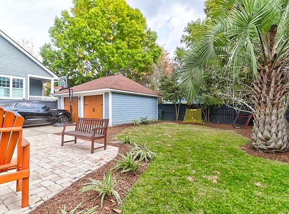 Fully furnished on Daniel Island. Updated four-bedroom on a friendly, quiet street that's close to all the island conveniences! Located on a cul-de-sac with 2 car detached garage with epoxy floors. Master and 3 additional bedrooms (all upstairs), 2.5 baths. Two flex spaces downstairs can provide dining room, home office (w/ built-ins) or playroom. Updated eat-in kitchen leads to a new hardscaped patio. Living room has built-in bench, shiplap accent, and gas fireplace. Walk-in wine or storage space as well. Large pet door already installed. Short distance to the waterfront for coffee, dining, or to play in the fountains. Dogs maybe allowed by a case-by-case basis, no cats please. Utilities and yard not included. Enjoy concerts at Credit One Stadium or listen from the back yard. Short distance to DI Elementary or Bishop England High School. South Daniel Island features included access to 3 different pools, walking distance to downtown Daniel Island, and the beautiful Smythe Lake, and Waterfront.
