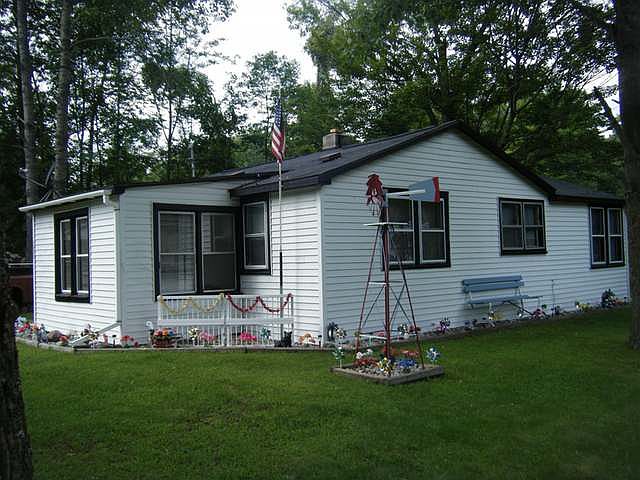 Cute cabin, or full time home, has had several recent updates including a new furnace, new bladder tank, new hot water heater, and blown in insulation. Walk out basement and is on the Denton creek. Woodsy view in the back yard.