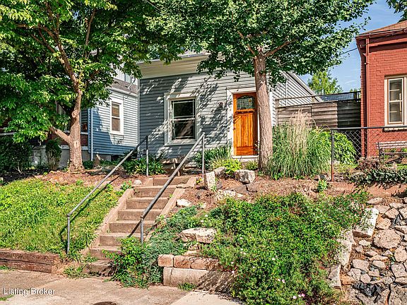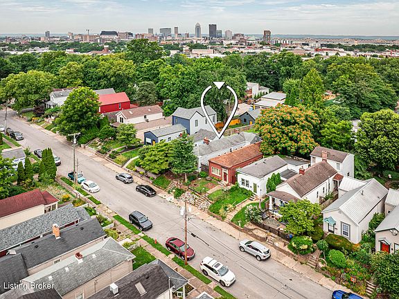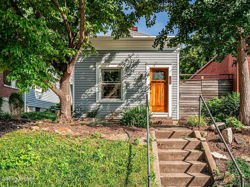 Welcome to this charming circa 1900 shotgun home nestled in the heart of Irish Hill, convenient to all that the Highlands, Butchertown, Nulu, Germantown, Clifton neighborhoods and more have to offer! Featuring two bedrooms and a full bathroom, this beautifully maintained residence offers the perfect blend of historic character and modern amenities. The living spaces boast impressive 10-foot ceilings, creating an airy and inviting atmosphere throughout the majority of the home. Enter from the secured side yard to the spacious eat-in kitchen—it's a chef's delight, featuring cherry cabinets, elegant quartz countertops with under-cabinet lighting, stainless steel appliances including a gas oven/range, and a large single basin under-mount sink. There is a pantry as well as a laundry closet, which includes stackable LG ThinQ washer and dryer, to remain. Take the main hall through the living or dining room, past the full bathroom with tub/shower combination which is opposite a built-in bar area, and on to the bedrooms at the front of the home (one is a traditional shotgun 'walk-through' bedroom which would also make for a wonderful home-office, spare room, or bonus room). The main bedroom features crafted arched French doors, decorative fireplace mantle, ceiling fan and picture rail. Relax and entertain on your covered rear patio, complete with a ceiling fan, overlooking the beautifully landscaped yard adorned with mature plantings. The fully fenced rear and side yards offer privacy and a safe space for pets to play. For those who appreciate additional space for hobbies or creative pursuits, the two-story garage is a standout feature. It includes a parking bay with alley access on one side, and another bay perfect for a workshop or additional storage. Upstairs above the garage, a wonderful studio awaits, featuring a wood-burning stove, ideal for an artist's retreat, yoga-studio, or home office. Don't miss your chance to own a piece of Louisville's history with the modern conveniences you desire and all in an ideal location.
