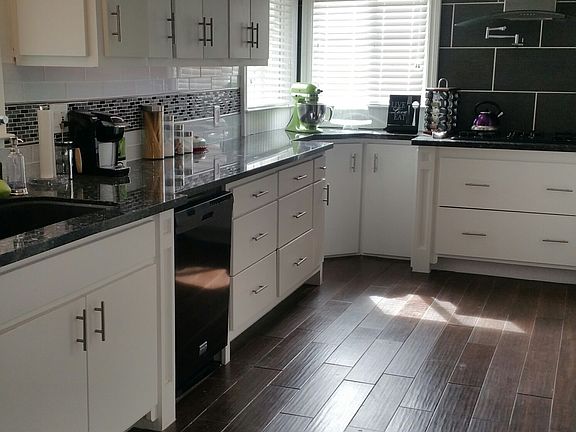 Cute as a button! Gorgeous kitchen for that chef in your family! kitchen offers special lighting, custom stone counter tops, white cabinets, back splash, amazing floors. Dual pane windows, new bathroom shower door, fresh paint. Enclosed patio, newly poured patio, new fencing, less than 1 year new roof, so much more! A must see!!