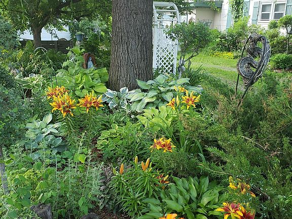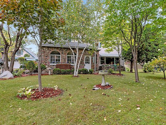 Beautiful 2 Story home with extensive landscaping! Stone, brick, and stucco siding, detached garage built in 2006 and it has a 100 amp breaker panel, concrete floor, and ladder to above-lighted storage, it also has a header off to the side for future overhead garage door! Enjoy a sand point well for watering the lawn. The interior boasts original hardwood floors, beautiful kitchen cabinetry, butcher block counters, and window valances, gorgeous case opening to sitting area off kitchen with arched frame windows, 3 large bedrooms, a workout room, a media room and front load washer & dryer! The main level bedroom could be used as a sunroom with screened-in half wall that overlooks fish pond and water fountain! Amazing artistic features both inside and out created by the homeowner, a local artist known for his beautiful sculptures and air brushing talents that are wonderfully displayed throughout the home! Be sure to check out the interactive 3-D virtual tour link - this one is a must see!