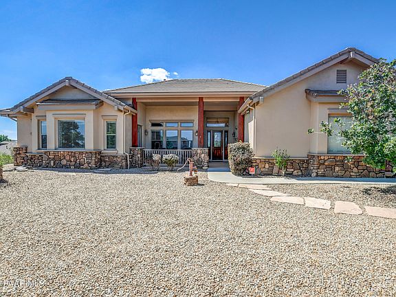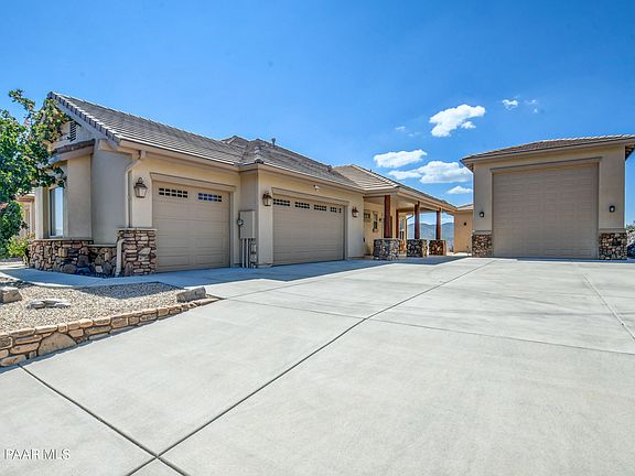 Welcome to your dream retreat, built by the Carrington Homes! On a serene 1/2-acre lot in the heart of Prescott, this luxury estate offers the ultimate blend of elegance, space, and functionality. Spanning 2807 sqft, this home boasts 3 spacious bedrooms, a dedicated office, and 3 full bathrooms, with a rare second master wing for extra comfort and an attahced 3 car garage. The kitchen is a chef's playground, featuring high-end finishes and an open flow to a cozy breakfast nook + formal dining area. You'll love the picture windows framing breathtaking views, while outside, the porches invite you to relax in style.The ~800 sqft RV garage that comfortably fits your 36ft coach, with room to spare! Rare Prescott Gem.