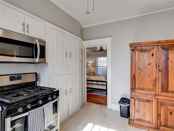 Super cute new kitchen! Set The Table For family dinners in the formal dining room at this charming 1-story craftsman bungalow home on corner lot of .17 acres. Offers 3 bedrooms, 1 bathroom, classic living room with fireplace for chilly nights, wood floors, inside laundry, sunny new remodeled kitchen with all stainless steel appliances, **New Cabinets**NEW Countertops** New Flooring** New Fixtures** Fresh Paint** breakfast area, gas range, custom blinds, arched doorways, flower garden, over-sized yard fenced yard, mature plants, large patio, carport, workshop with power which many possibilities! Could be converted to apartment or mother in law suite. Third bedroom addition is huge could be a den/ family room! Covered rocking chair front porch, lots of parking, exterior lighting, a manicured lawn, fenced back yard for play, corner lot, wonderful location. close to hospitals, college, medical district.
