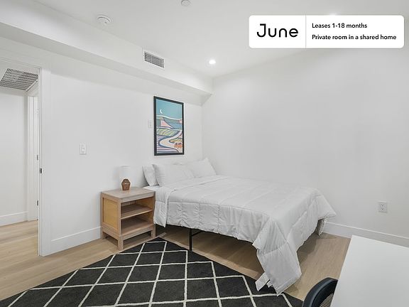 This Queen room in North Hollywood is available on a 12 month lease or a flexible short term (31 to 364 days) lease. You pick your custom start and end date. Monthly rent rate is determined by furnishing preference, move-in date and move-out date. Speak to a June representative for recommendations on the best stay duration for the lowest rate.