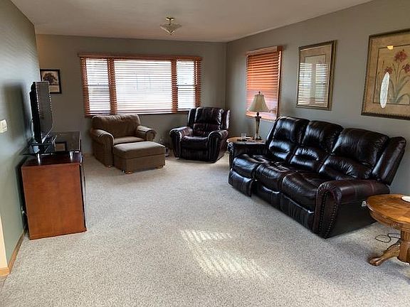 This 2 story home has a great location across the street from Garrigan High School. The main level offers a large kitchen with breakfast bar, dining room w/sliders to the private deck, living room, half bath and laundry room. The upper level has 4 bedrooms & 2 baths and the finished lower level offers 2 family rooms and an additional laundry room. Built in bar with refrigerator in lower level stays. Nice double attached garage with beautiful doors. Plenty of space for a growing family. Charming front porch.