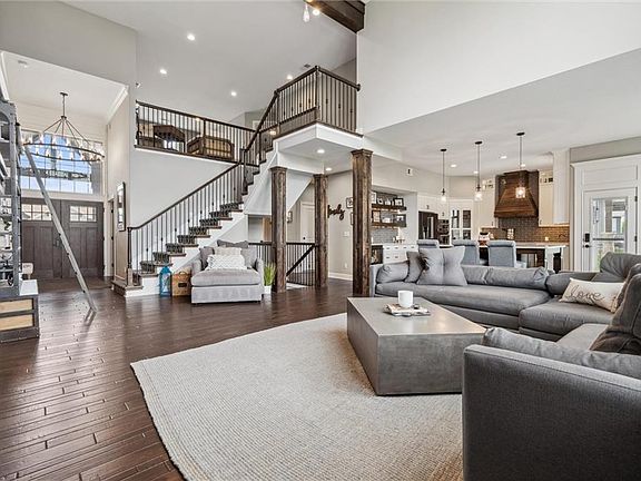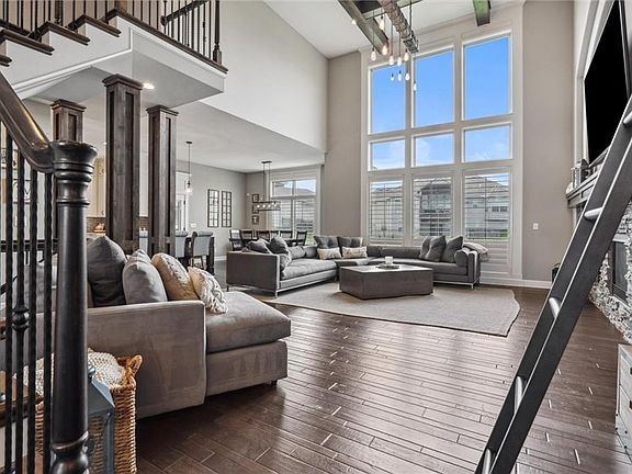 Stunning Custom Built Oasis Floorplan by Pfeifer Construction that perfectly balances Luxury and Functionality and WAIT UNITL YOU SEE THE BASEMENT! This 1.5 Story boasts SOARING 19' Ceilings that create an airy and spacious ambiance throughout the Main and Upper Level. The heart of the home features a Spacious Kitchen w 8' island, all Countertops are the highest level Quartz (so no staining), Floating Shelves, Tons of Cabinetry and Walk-In Pantry. Induction Stove Top makes for not only wonderful cooking but easy to clean. Large windows throughout the entire back of the home allow you to see the greenspace. Primary Bedroom and Laundry are on the main level. Primary bedroom has coffered ceilings, large en-suite w dual vanities, plenty of storage, dual showerheads, and custom-built walk-in closet. Upper level has spacious loft w 2 bedrooms and full bathroom. Basement is an ENTERTAINER'S DREAM! 11' island w brick base and Quartz Countertops, 4 Refrigerators, Custom Cabinets, Wine Storage, Floating Shelves throughout, custom Glass Workout Room, Half Bath, and plenty of storage left over! Outside you'll enjoy a 16x16 Covered Patio w Blackout Shades and Cozy Fireplace, Extended Patio into Yard Perfect for Firepit & Adirondack Chairs, Wrought Iron Fence, Level Backyard, w Greenspace caddy corner to the lot. Subdivision is 8 years old and consists of many social activities, subdivision pool, walking trails, fishing ponds, and within walking distance to Blue Springs Lake. Schools are Voy Spears, Delta, and Blue Springs South. Call today for a private showing.