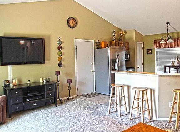 Temporarily off the market. Fantastic home in a great neighborhood! This 3 bed, 2 bath home has been professionally painted and well maintained. All new stainless steel appliances in the kitchen. Refrigerator stays! Newer carpet throughout the house. Greatroom features vaulted ceilings, a wood burning fireplace and a flat screen tv that will be included with a good offer. Beautifully finished basement with family room and additional sleeping area. Oversized 2 car garage plus a utility shed. New hot water heater just installed. 1 year HSA Home Warranty to be provided by seller