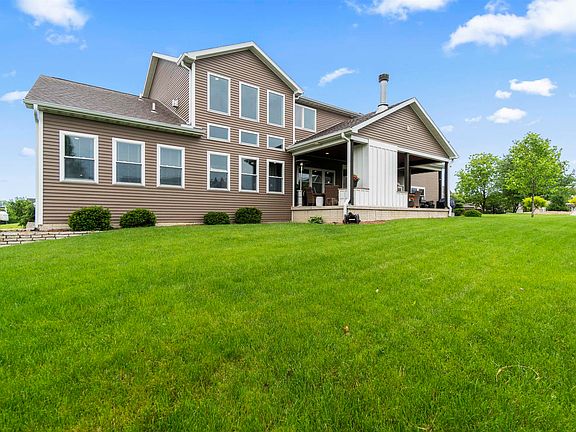 Don't miss out on this stunning open floor plan home designed for everyone. From its grand double doors and stone entryway to its lush landscaping, this property impresses at every turn. Inside, discover 6 bedrooms, an office, 5.5 bathrooms, a 4+ car garage, workshop, theater room, and basement bar. Step out back onto the covered patio with an outdoor fireplace, perfect for morning coffees or evening cocktails. Upon entry, a remarkable foyer leads to a private office on the left and a luxurious main floor primary bedroom suite on the right. The home unfolds into a breathtaking two-story great room featuring a stone fireplace framed by built-in shelving. This space seamlessly connects to the informal dining area and gourmet kitchen, complete with a large center island, pantry, and built-in appliances. Ascend the wide staircase to find a 2nd expansive bedroom suite with a sitting area, along with 3 additional spacious bedrooms, 1 with its own full bathroom and the other sharing a 2nd full bathroom. All have walk in closets. The bookshelf in the hallway opens to unveil a secret room. The basement offers entertainment galore with a theater room, bar, recreation area, bonus room and 6th bedroom. Basement has shelter area and ample storage space. Upgrades abound, including built-in speakers, hardwood floors, in-house vacuum system, and an upgraded trim package. Nestled at the end of a cul-de-sac near a park and walking trail, this home promises both luxury and convenience.