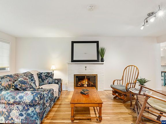 Welcome to Senior Estates Golf and Country Club (Woodburn Estates & Golf), a welcoming 55+ community. This one-level home is meticulously maintained and freshly painted inside and out, featuring two bedrooms and two bathrooms. The primary suite boasts a walk-in closet, built-in wardrobe, and an en-suite bath with a walk-in shower. The home offers an open floor plan, hardwood floors, and a cozy gas fireplace, ensuring it is move-in ready.