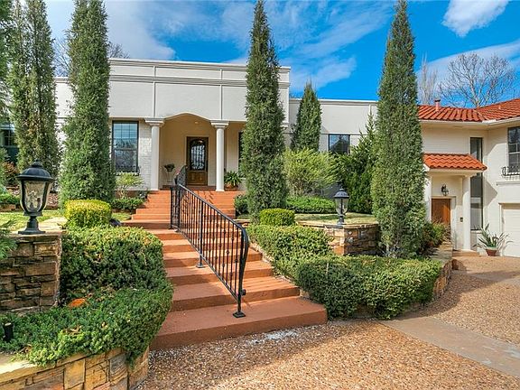 Glenbrook Home tucked away on very private cul-de-sac .39 Acre lot, this Santa Barbara Style Oasis, designed for entertaining, features multiple living areas, game room & cook's kitchen. The outdoor living space features custom lighting and landscaping w/ big boulders, stunning setting to live year round. Master retreat offers sitting area, deluxe spa bath w/ glass enclosed shower & full body spray and dream dressing room closet w/ windows for ample natural light. Deluxe materials including travertine flooring, Viking & Jenn Air appliances, custom cabinetry w/ soft close & pull-out drawers. Game room w/ wet-bar leads to 2 more bedrooms & bath. Downstairs offers office space, another living, full bath & up to 2 more bedrooms, very flexible for boomerang kids, inlaws, home office, etc. Oversized garage, ample parking. The impact resistant, stone coated, steel roofing tiles offer superior weather protection. Walking distance to Classen Curve, Whole Foods, Starbucks & NH Plaza.