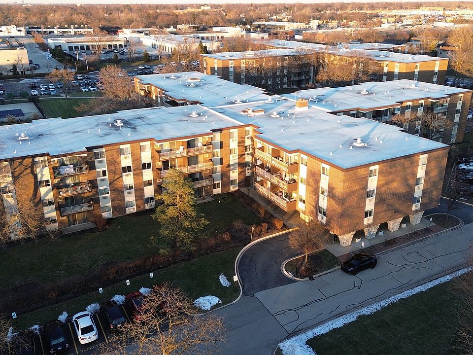 *TOP-FLOOR LIVING IN AN UNBEATABLE LOCATION* Spacious top-floor condo offering 2 generously sized bedrooms and 1.5 bathrooms with an open, functional layout. The nicely updated kitchen features a newer refrigerator, brand-new dishwasher, wine fridge, and thoughtfully designed cabinetry with soft-close doors, pull-out shelving, and ample storage. An eat-in kitchen area flows seamlessly into the expansive living and dining room, perfect for everyday living and entertaining. Enjoy outdoor space on the large private balcony, plus peace of mind with newer AC units throughout. The primary bedroom includes a half bath and a large walk-in closet. Additional storage is abundant throughout the unit. Well-maintained building with a recently updated main-floor lobby, two elevators, mail room, laundry rooms on every floor, and trash chutes on each floor. Community amenities include a pool and tennis courts, all included in the HOA. Prime location near major highways, close to downtown, and just steps from Mariano's for everyday convenience.