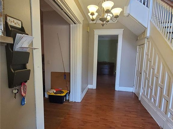 Perfect Large Family Home or could be converted to a duplex at an amazing price! This home has character and so much potential! With a bit of love, this house could be amazing. Lg 2 parcel lot with deck and det garage that has room above for guests or hobbies. Beautiful Oak and Pine hardwood flooring throughout with original pocket doors and claw-foot tub. Lg bedrooms with a massive Owners Suite on 3rd floor. Huge Kitchen. Two separate heating and cooling units! Main HVAC unit is newer. All appliances work and convey! 5th br could be computer room or upstairs den. 2 year old roof! DRY Full Basement! 2nd floor bathroom has been gutted and ready for your design. This is an "As Is" home but well worth the look and imagination!