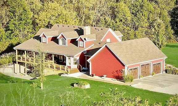 Boasting an array of custom finishes and a thoughtful open plan layout, this immaculate 4-bedroom, 3.5-bathroom home is a paradigm of craftsman style living. Features of this 5700 sq. ft. home include solid hardwood floors, huge windows with north and south exposure, new high efficiency hvac system, and two convenient washer/dryer hook-ups. Beyond a two story entryway space the home flows into a luminous, open-concept living, dining, and kitchen area. The country-style kitchen is equipped with granite countertops, custom cabinets, and a suite of appliances including a gas cooktop. The master bedroom sits just off the living area and has a massive walk-in closet with private laundry facilities. The master bathroom has ceramic tile flooring, double vanities, an oversized walk in shower, and chic fixtures including a towel warmer that finish it off. The fully finished walk out basement offers an inviting family room with a fireplace, recreation room with pool table, darts & wet bar and a large storage room that doubles as a workshop. A finished exercise room can be utilized as a fifth non conforming bedroom. Even with all this it will be hard to stay inside with the amazing views and covered porches on the front and rear. If you are looking for the perfect shop or home business location the 40x80 metal building with 16 foot sidewalls, office and bathroom (heated and cooled) is ready to go. HVAC (dual) updated 2020, water heater 2020, new septic tank 2021, new roof 2016 and new rear porch and siding in 2019.