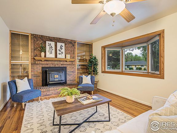 Beautiful 3 bd 2 bth home in central FOCO close to CSU! New interior/exterior paint, spacious family room w/ cozy fireplace & hardwood floors. Immaculate kitchen updated w/ modern sink, subway tile backsplash & stainless appliances. Tile flooring & granite counters in primary bath. Fireplace in finished basement. Large corner lot has peaceful, fully fenced yard & enclosed porch. Rest at ease w/ vinyl windows, newer blinds, roof replaced 2019, AC new in 2021. Oversized garage & TWO storage sheds. Make sure to talk to your lender about the power of points to buy down your rate!
