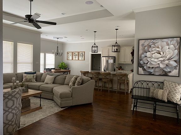 This custom Acadian style home sits on a corner lot in the heart of downtown Picayune. It is a new construction built in 2016. The house sits on the Westside of town three blocks from Picayune Junior High and Memorial High School and half a mile from Picayune’s Westside Elementary School. The house is also two blocks from St. Charles Borromeo Catholic Church and School and three blocks from the new Crosby Commons city park. This is an energy efficient home with an open floor plan containing three bedrooms and three full baths on the main floor with a bonus room above the garage. Access to the bonus room is from the garage. The home contains spray foam insulation, two on-demand water heaters, a gas fireplace with gas appliances. The home is constructed of brick and pre-painted Hardie siding. The porches have bead board ceilings. The garage is also insulted and contains a half bath for bonus room convenience. The master suite has his/her walk-in closets with a custom walk-in shower and garden tub (with jets). One of the bedrooms has its own bathroom accessed by a pocket door. All three full bathrooms have custom cabinets, granite counter tops and custom glass shower doors. All closets have custom wood shelving. The home is wired with indoor/outdoor speakers throughout the house and on the front and back porches. The flooring is tile in the bathrooms and laundry room with wood flooring throughout the rest. The kitchen contains custom cabinets with granite counter tops and a walk-in pantry with custom wood shelving. The laundry room has exterior access along with custom cabinets, granite counter tops and a utility tub. The home sits on a corner lot facing Third Ave with a vacant lot behind the home. It is also available for purchase for an additional $30,000. Square footage: First Floor: 2156.1 Second Floor: 307.4 Total Living area: 2463.5 Garage Area: 631.8 Porch: 264.3 Patio/Deck Area: 364.6