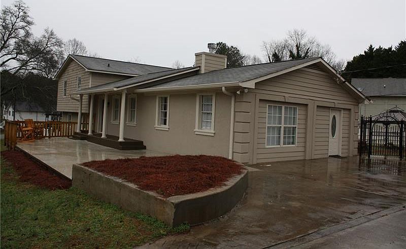 Location, location, location... more bang for your buck! This home features double drive-ways, a huge detached garage with 2 workshop areas, separate entrance for full storage above, 2 giant patios, stacked stone raised gardening beds, a covered fire pit and landscape stepping stones galore. Offering new exterior paint/caulk, gutters, chimney/fireplace, tile flooring & kitchen back splash, light fixtures, bathroom fixtures, concrete patio in front yard, thermostat and heating and air, roof 5 years. Over-sized master bedroom with teen suite at opposite side of house.